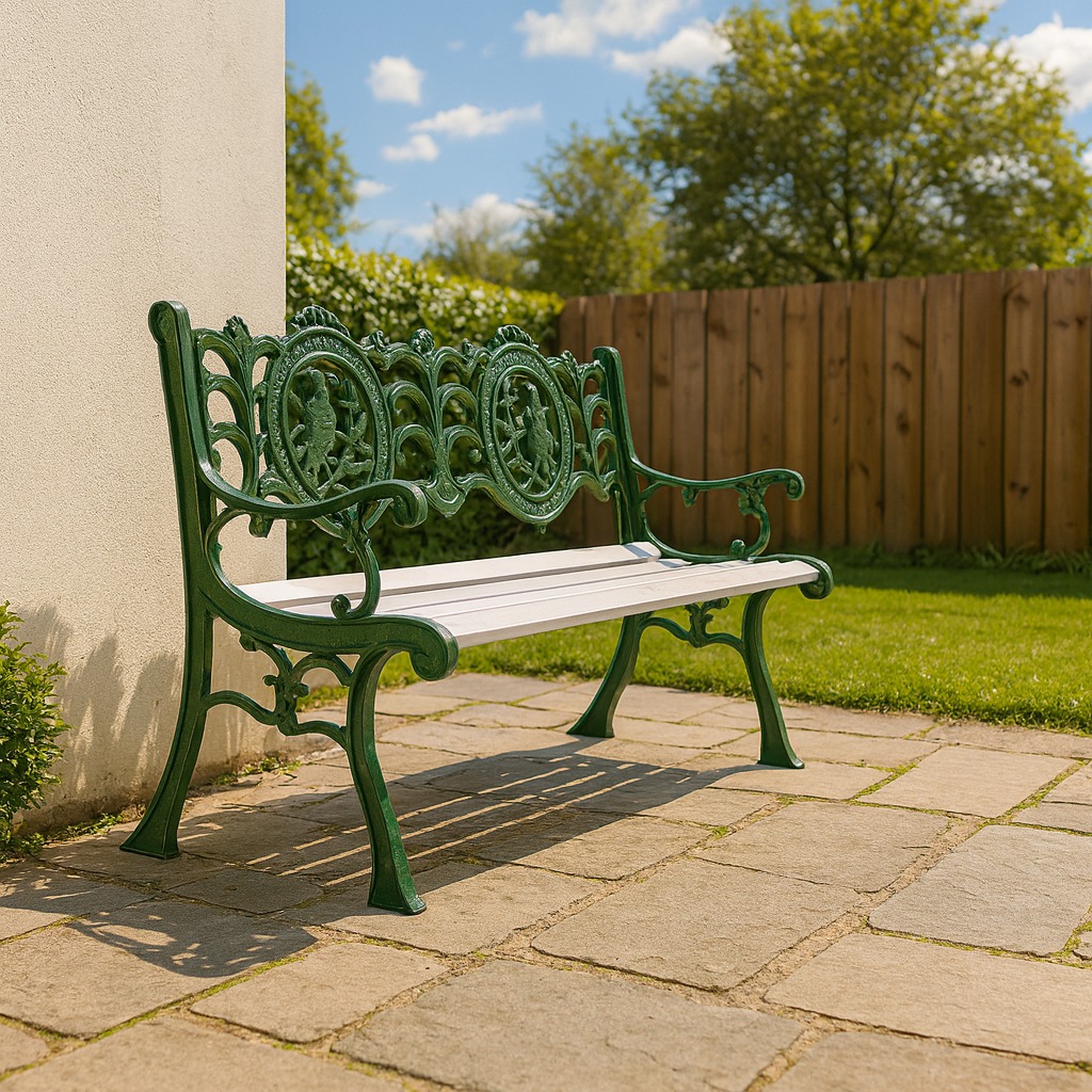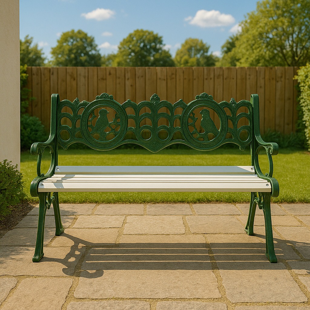 - 🛡️ Diseño: Respaldo con trabajo artístico; estructura robusta apta intemperie