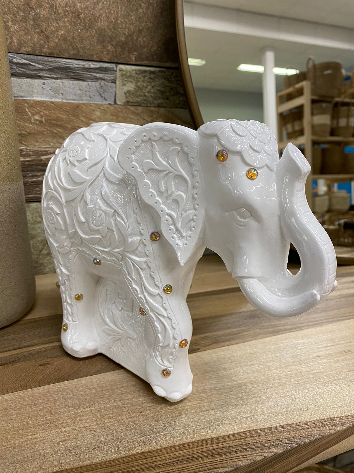 Escultura decorativa en acrílico que simboliza fortuna, protección y prosperidad. El elefante de la buena suerte es ideal para interiores o exteriores, aportando un detalle espiritual y elegante al ambiente.