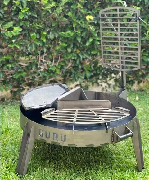 El Fogonero Gurú está fabricado en acero de 3,2 mm de espesor, lo que garantiza resistencia y durabilidad. Su amplio diámetro de 80 cm lo convierte en el centro perfecto para reuniones, quinchos o jardines.