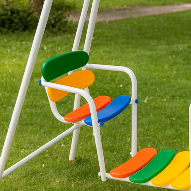 Combina asiento de PVC de alta resistencia con pórtico de caño para mayor estabilidad; ideal para relax diario en interiores o exteriores techados.