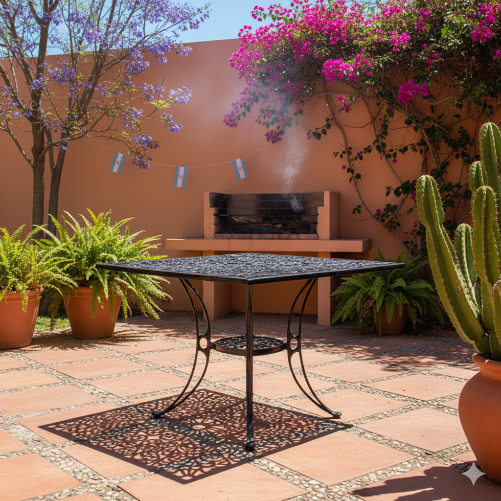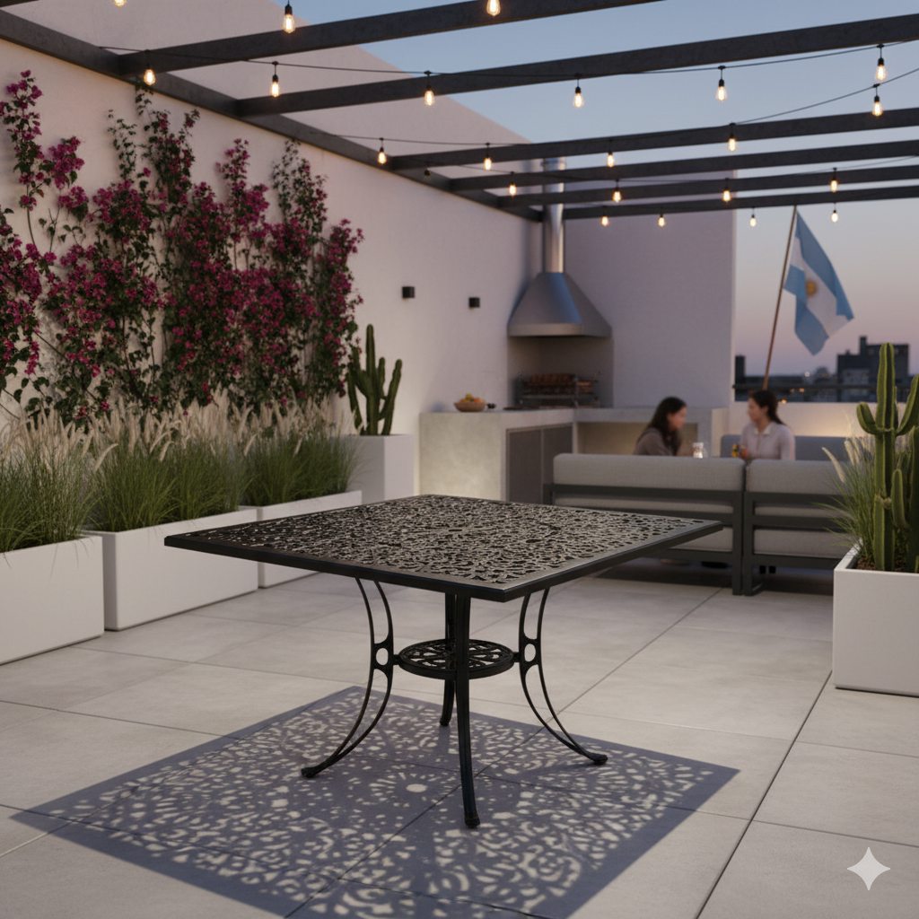 👉 Mesa cuadrada de fundición de aluminio con bordes lisos