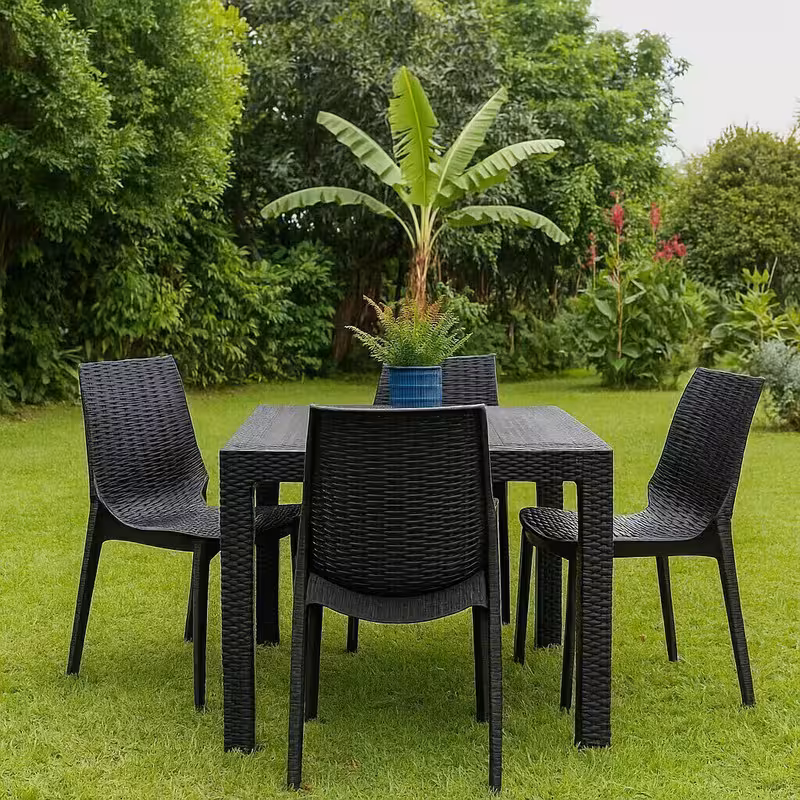 La Mesa Símil Rattan Alta de Munro está fabricada en PVC de alta calidad, con un diseño moderno que imita el trenzado del rattan. Ideal para patios, quinchos, galerías o comedores al aire libre, combina durabilidad con estilo natural.