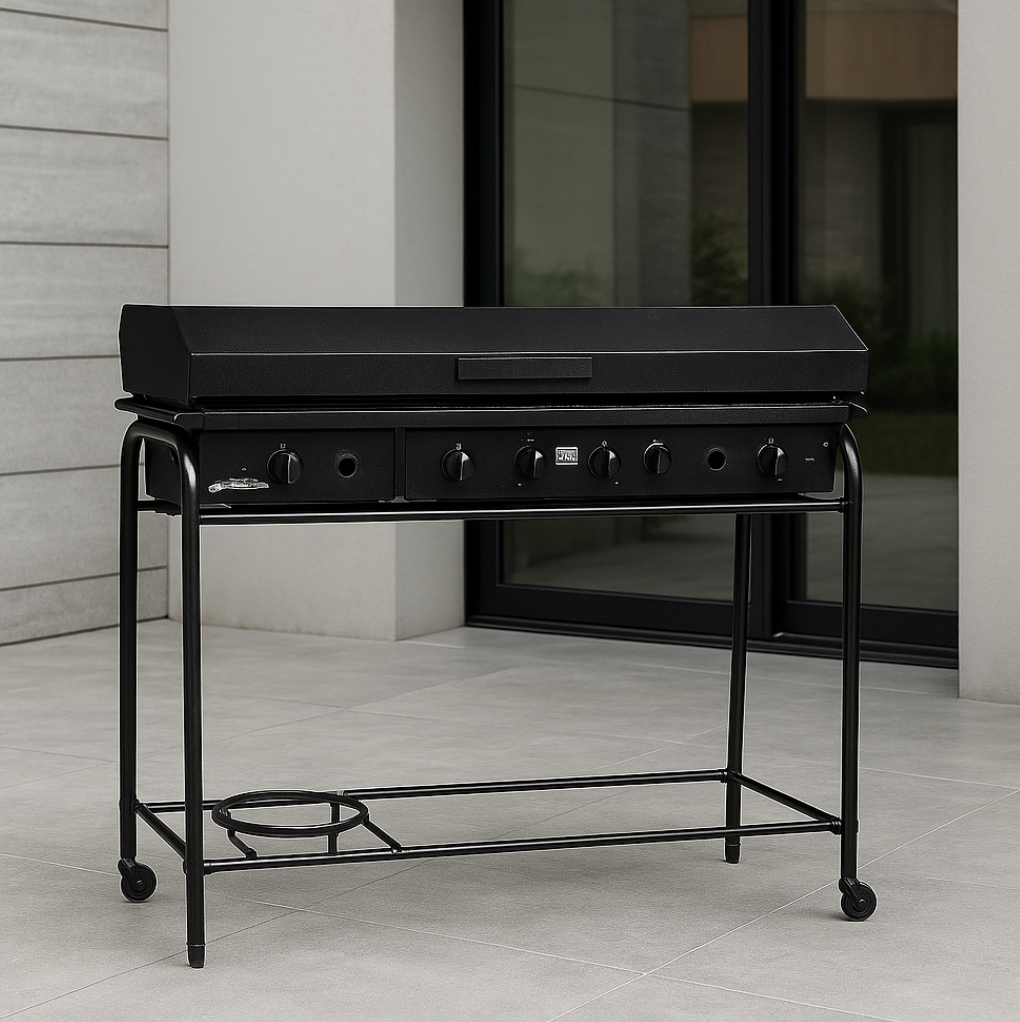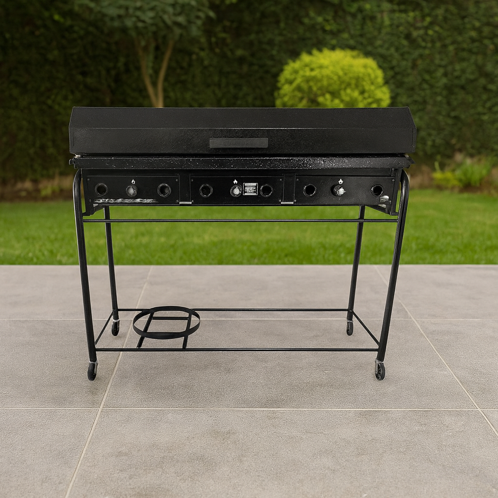 La Parrilla a Gas de 120 cm de Lourdes con carro y tapa está diseñada para brindar comodidad y potencia en cada cocción. Con su herraje enlozado de calidad y 4 quemadores, asegura un rendimiento uniforme y eficiente, ideal para reuniones numerosas.