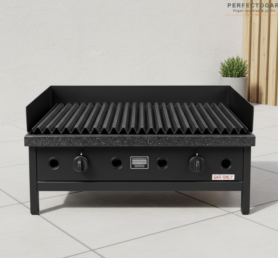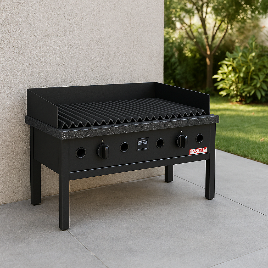 La Parrilla a Gas de 80 cm con faldón de Lourdes está fabricada con herraje enlozado de alta calidad, ofreciendo durabilidad y una cocción uniforme. Además, cuenta con la posibilidad de agregar carro y tapa como opcionales, adaptándose a diferentes estilos y necesidades.