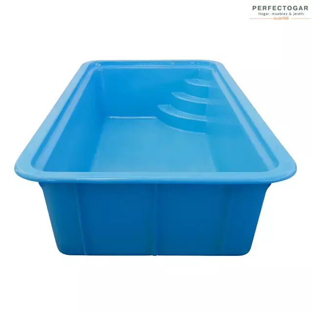 Piscina de fibra de vidrio reforzada con medidas de 4,65 × 2,60 × 1,10 m. Opcional: servicio de colocación, sistema de filtrado y luces para que disfrutes tu pileta al máximo.