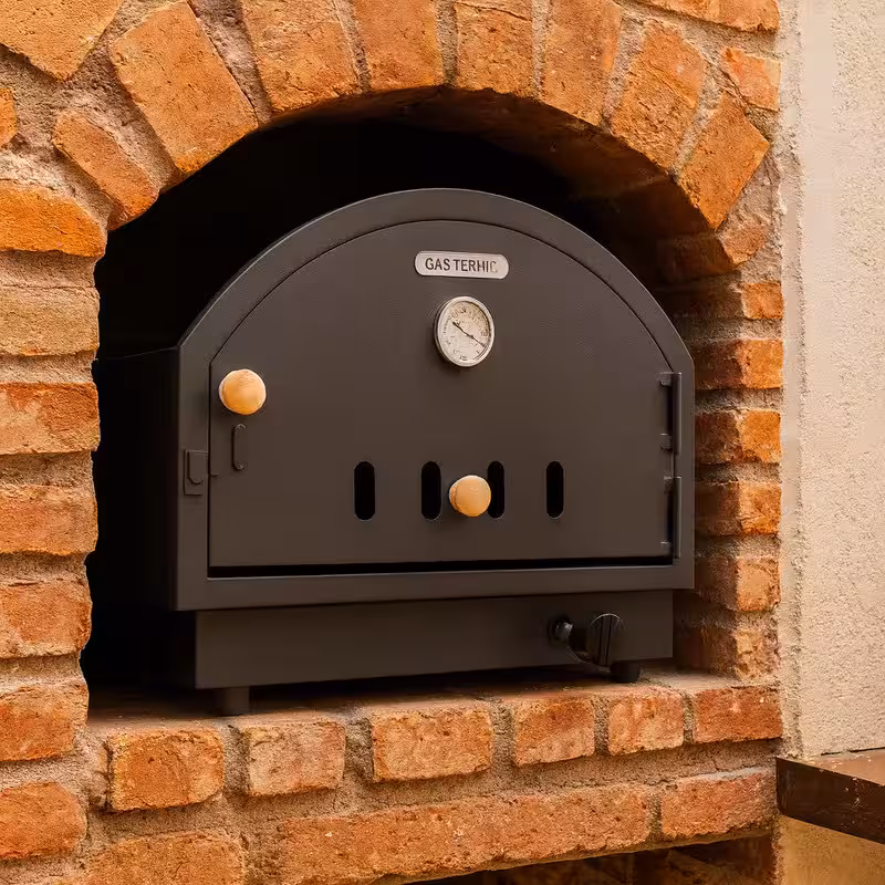 La puerta de horno de Gas Termic está diseñada para garantizar un cierre seguro y un control óptimo de la cocción. Incluye pirómetro, lo que permite medir y regular la temperatura con precisión en todo momento.