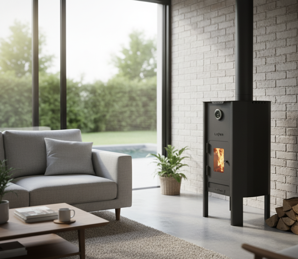 La salamandra Rond 7000 con horno de Lepen combina calefacción y cocción en un solo equipo, ideal para disfrutar del calor de la leña y preparar comidas caseras con el auténtico sabor del fuego.
