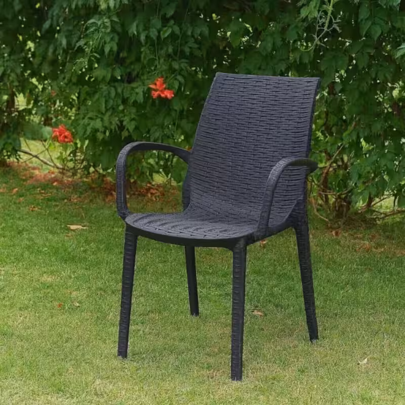 La Silla Símil Rattan de Munro está fabricada en plástico de alta calidad con diseño trenzado tipo rattan. Es apilable, lo que facilita su guardado y optimiza espacio. Ideal para quinchos, patios, galerías o comedores de exterior.