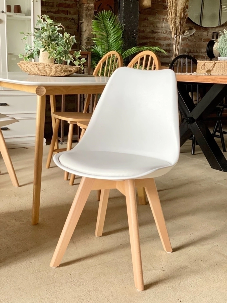 Silla Tulip con asiento ergonómico en polipropileno blanco y base resistente. Un diseño simple y moderno que eleva comedores, cocinas y oficinas.