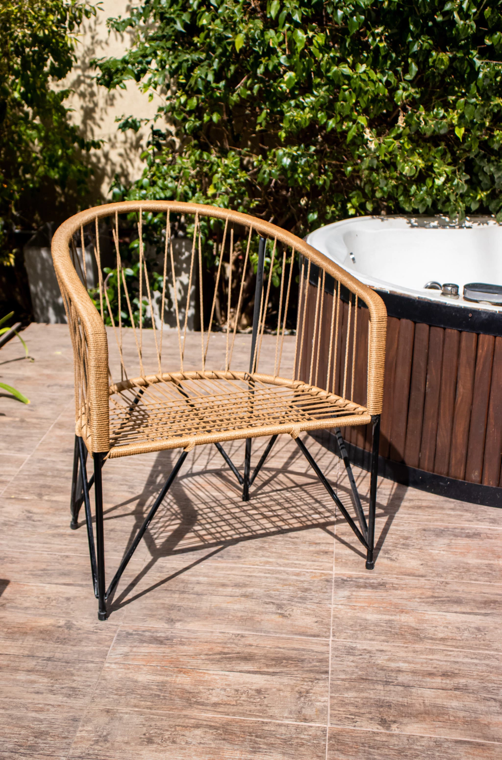 Sillón de un cuerpo con trenzado tipo yute y patas metálicas. Perfecto para sumar un asiento protagónico y cómodo.