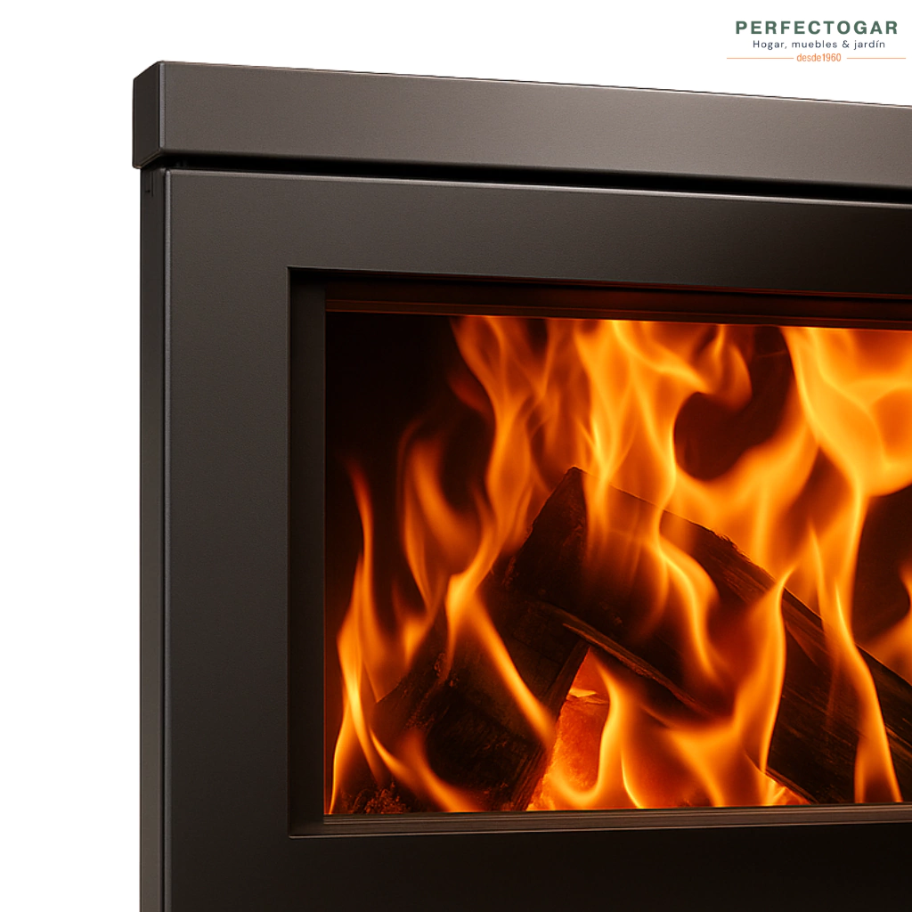 Salamandra Tromen Paris, ideal para grandes ambientes. Su tamaño, peso y terminación robusta la convierten en una pieza de alto rendimiento, aportando calidez y elegancia en tu hogar.
